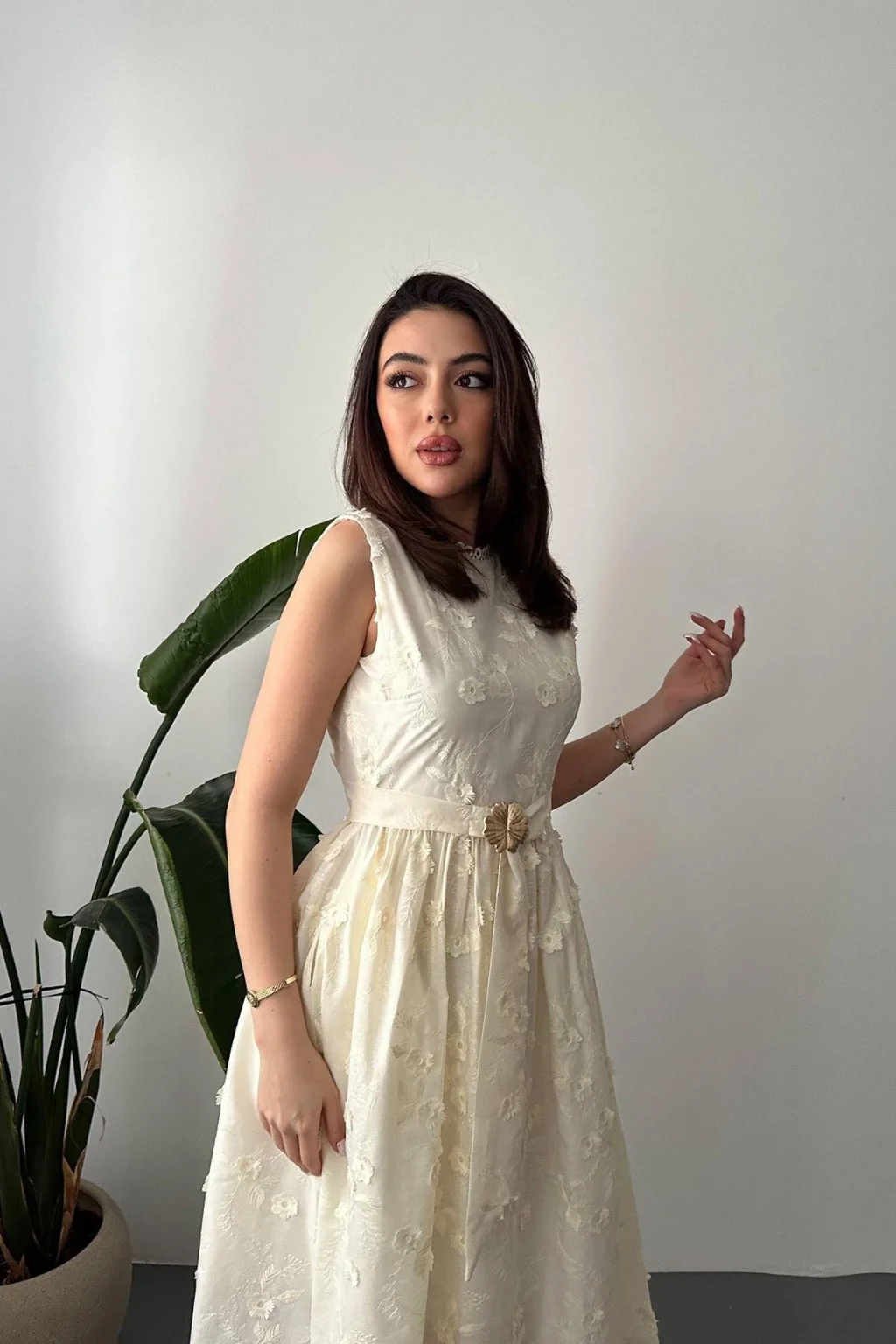 Kadın 3D Brode Detaylı Astarlı Bej Kolsuz Elbise, modern çizgisi ve zarif tasarımı ile günlük kullanım ve özel günler için ideal bir tercihtir. Şık görünümü ve rahat kalıbı sayesinde stilinizi tamamlamanızı sağlar. Kaliteli kumaş yapısı uzun süreli kullanım için uygundur.