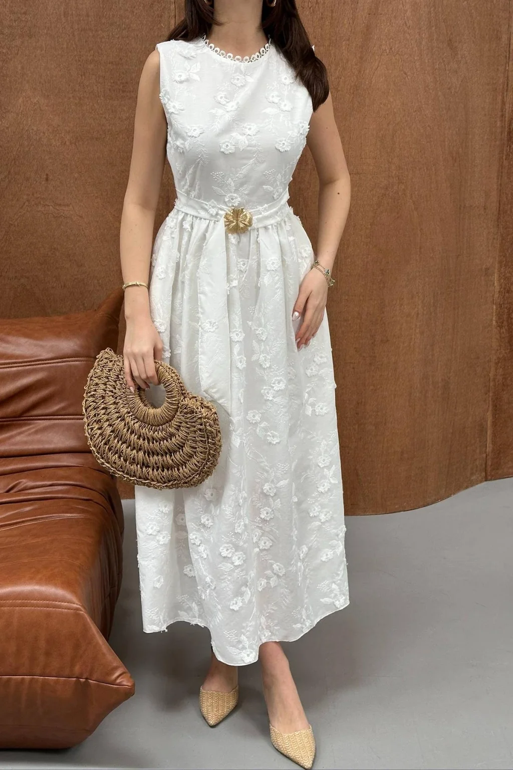 Kadın 3D Brode Detaylı Astarlı Ekru Kolsuz Elbise, modern çizgisi ve zarif tasarımı ile günlük kullanım ve özel günler için ideal bir tercihtir. Şık görünümü ve rahat kalıbı sayesinde stilinizi tamamlamanızı sağlar. Kaliteli kumaş yapısı uzun süreli kullanım için uygundur.