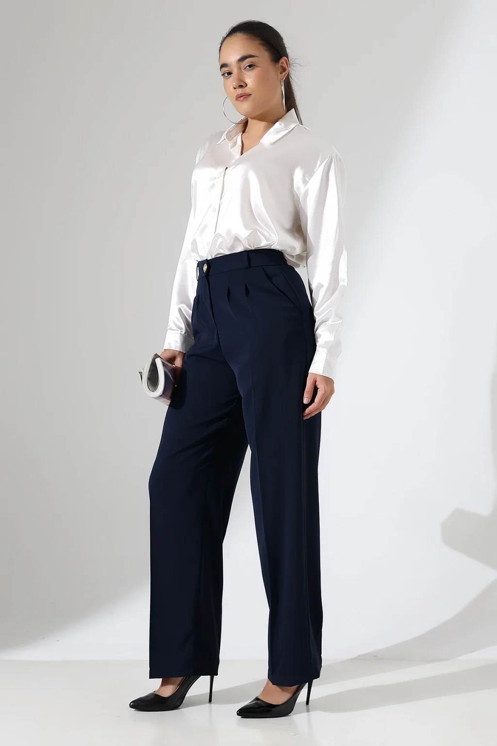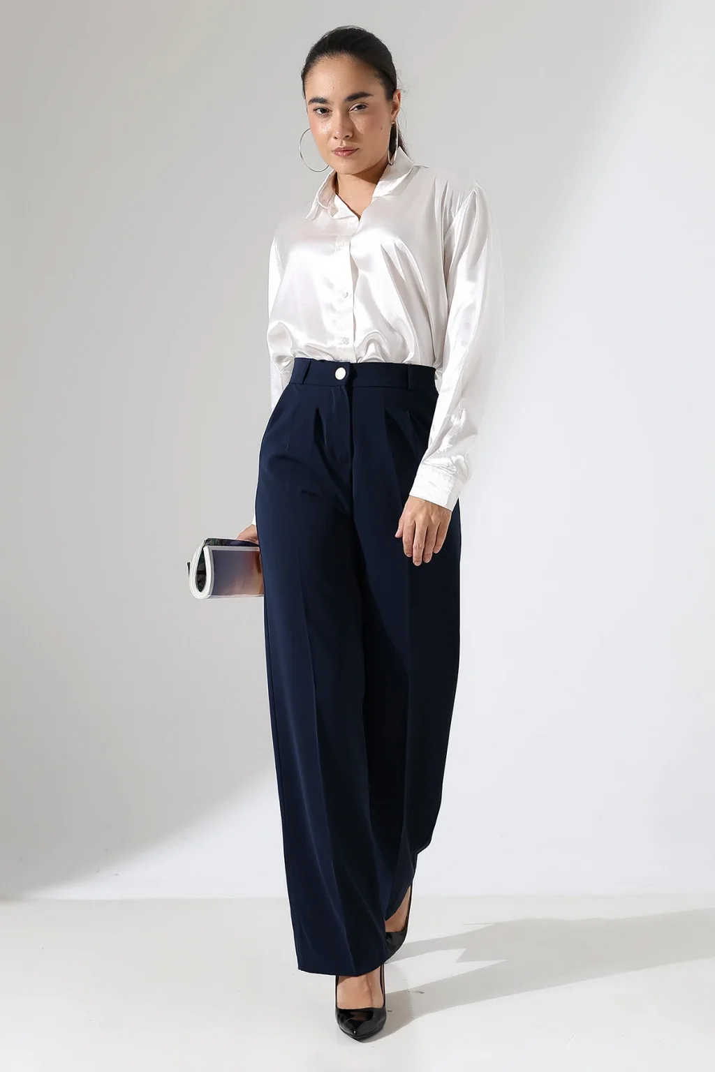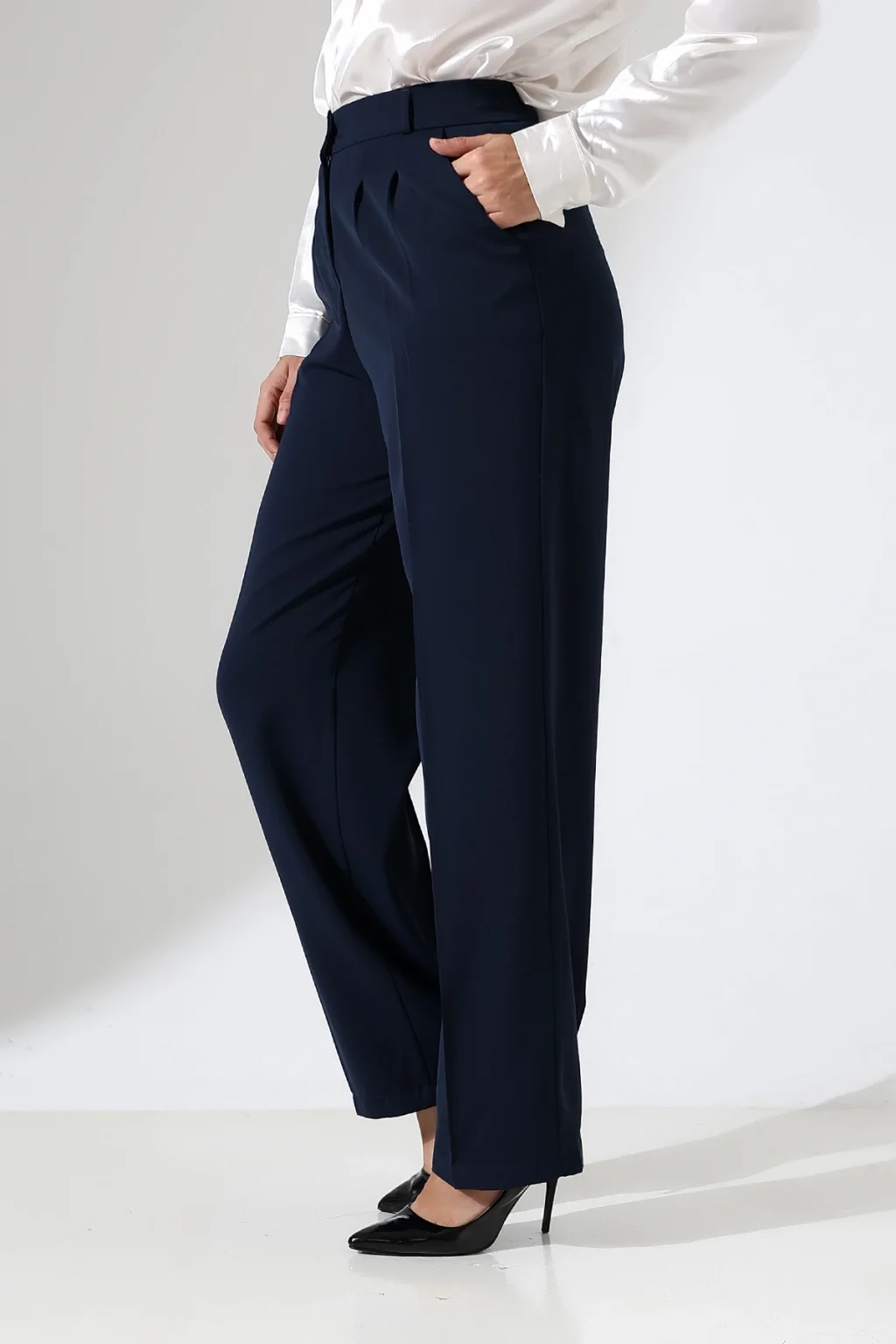 Kadın Arkası Lastikli Yüksek Bel Lacivert Palazzo Pantolon