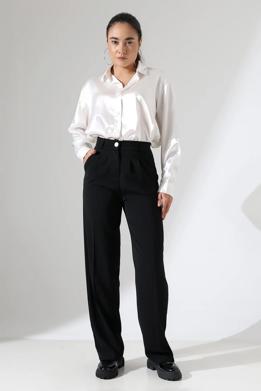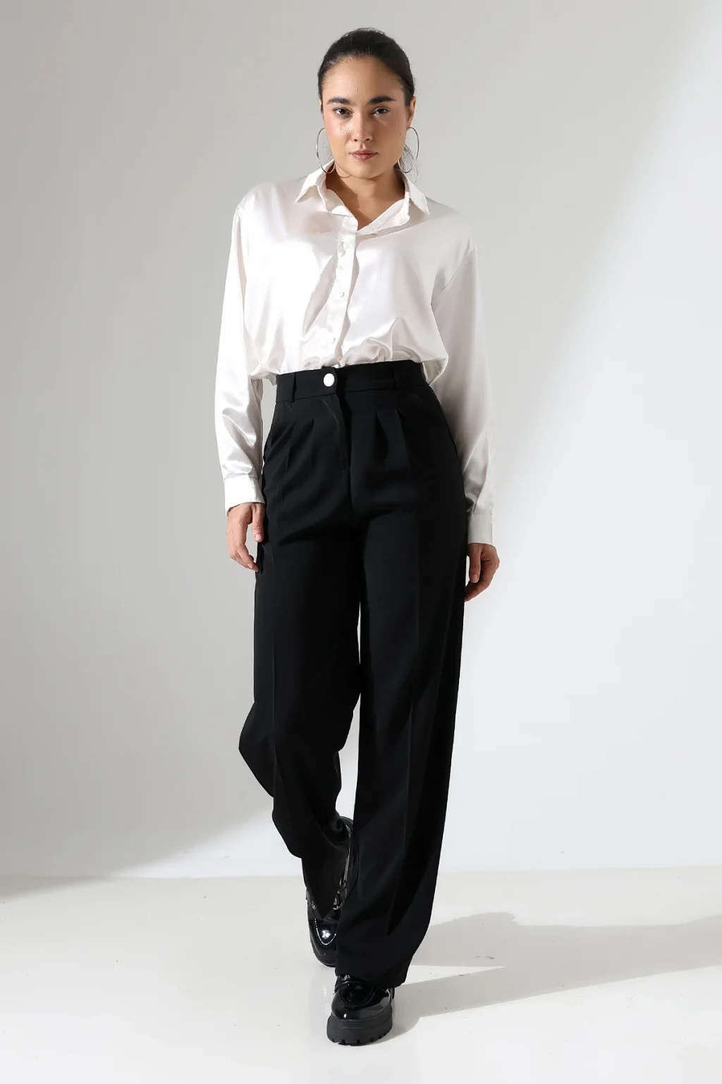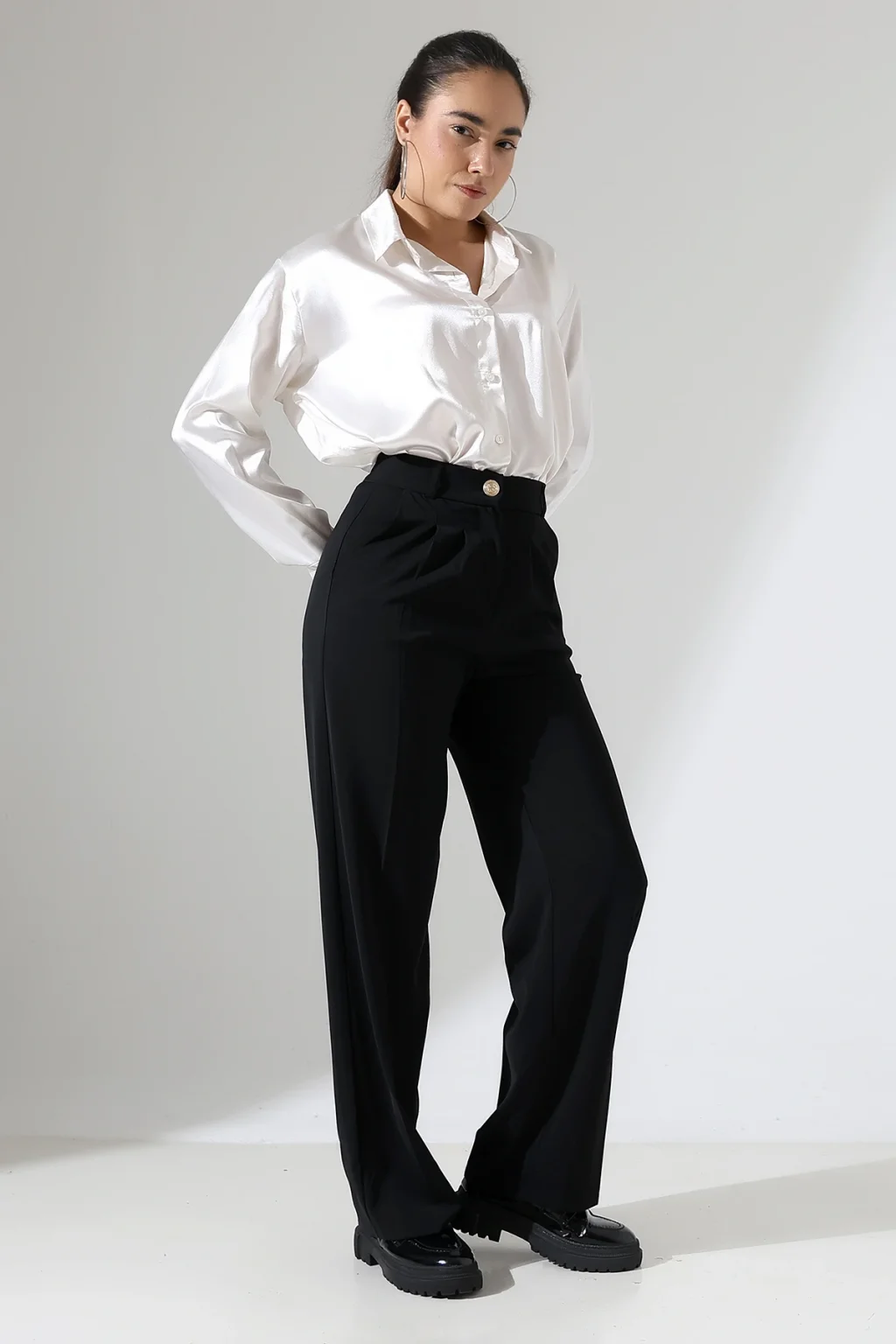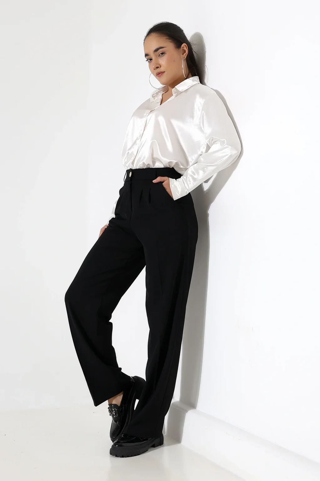 Kadın Arkası Lastikli Yüksek Bel Siyah Palazzo Pantolon, modern çizgisi ve zarif tasarımı ile günlük kullanım ve özel günler için ideal bir tercihtir. Şık görünümü ve rahat kalıbı sayesinde stilinizi tamamlamanızı sağlar. Kaliteli kumaş yapısı uzun süreli kullanım için uygundur.