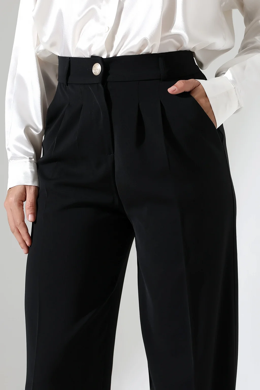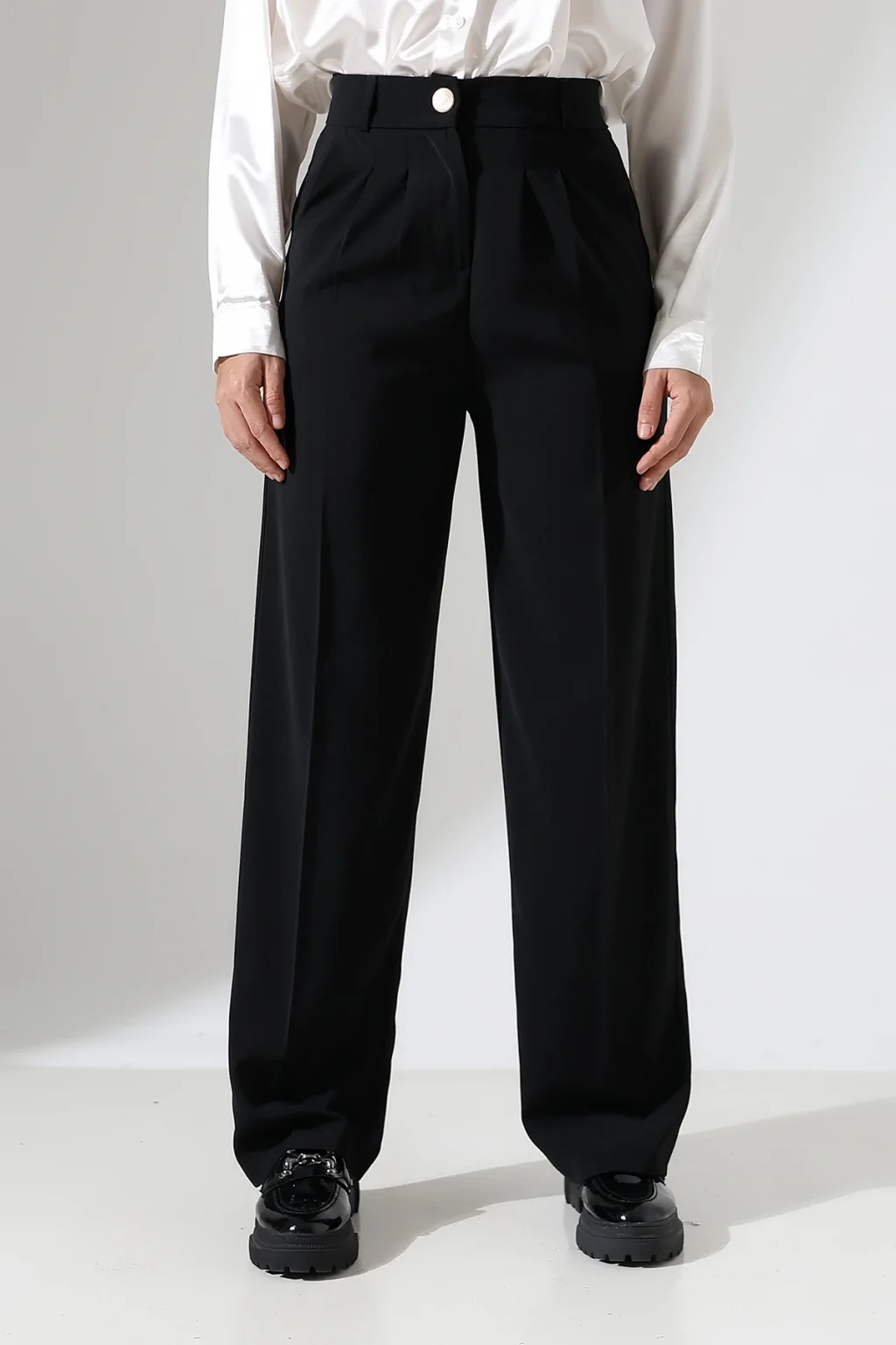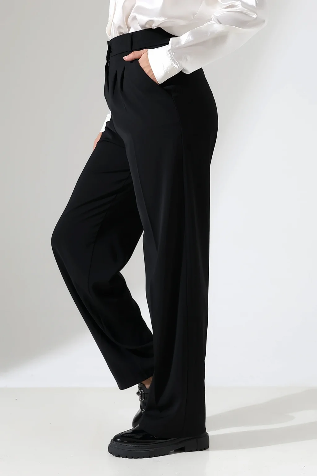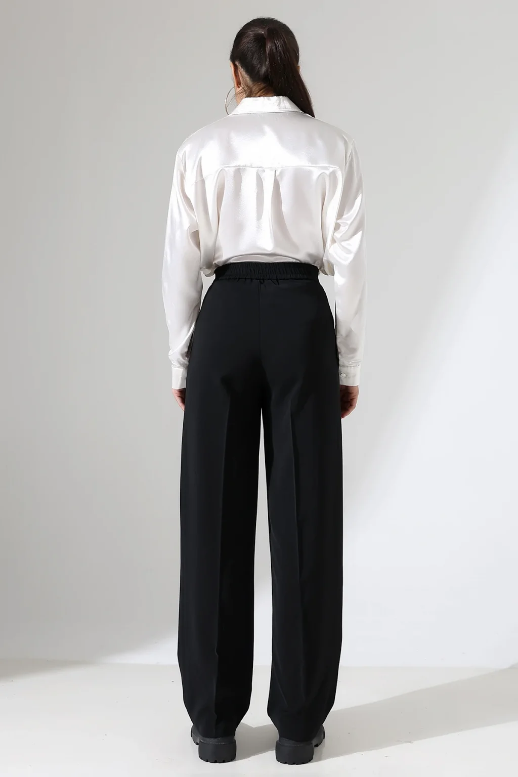 Kadın Arkası Lastikli Yüksek Bel Siyah Palazzo Pantolon