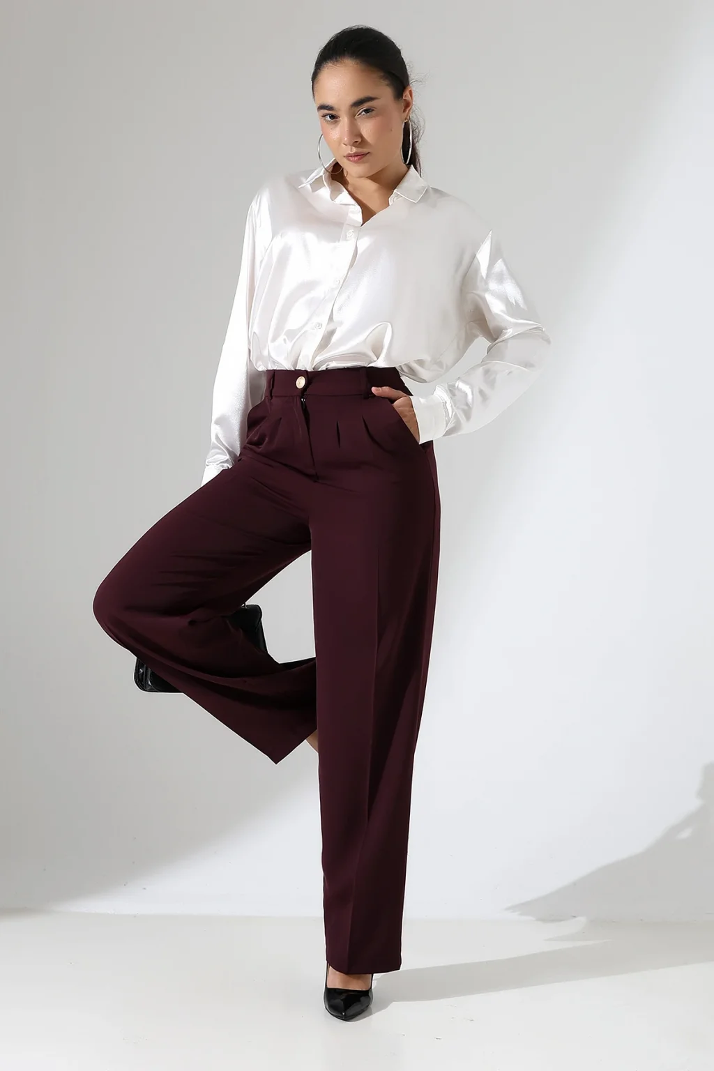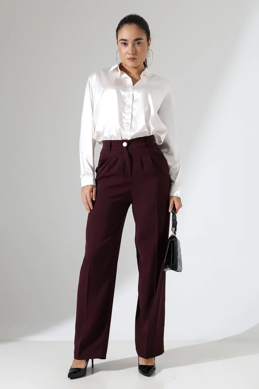 Kadın Arkası Lastikli Yüksek Bel Mürdüm Palazzo Pantolon, modern çizgisi ve zarif tasarımı ile günlük kullanım ve özel günler için ideal bir tercihtir. Şık görünümü ve rahat kalıbı sayesinde stilinizi tamamlamanızı sağlar. Kaliteli kumaş yapısı uzun süreli kullanım için uygundur.