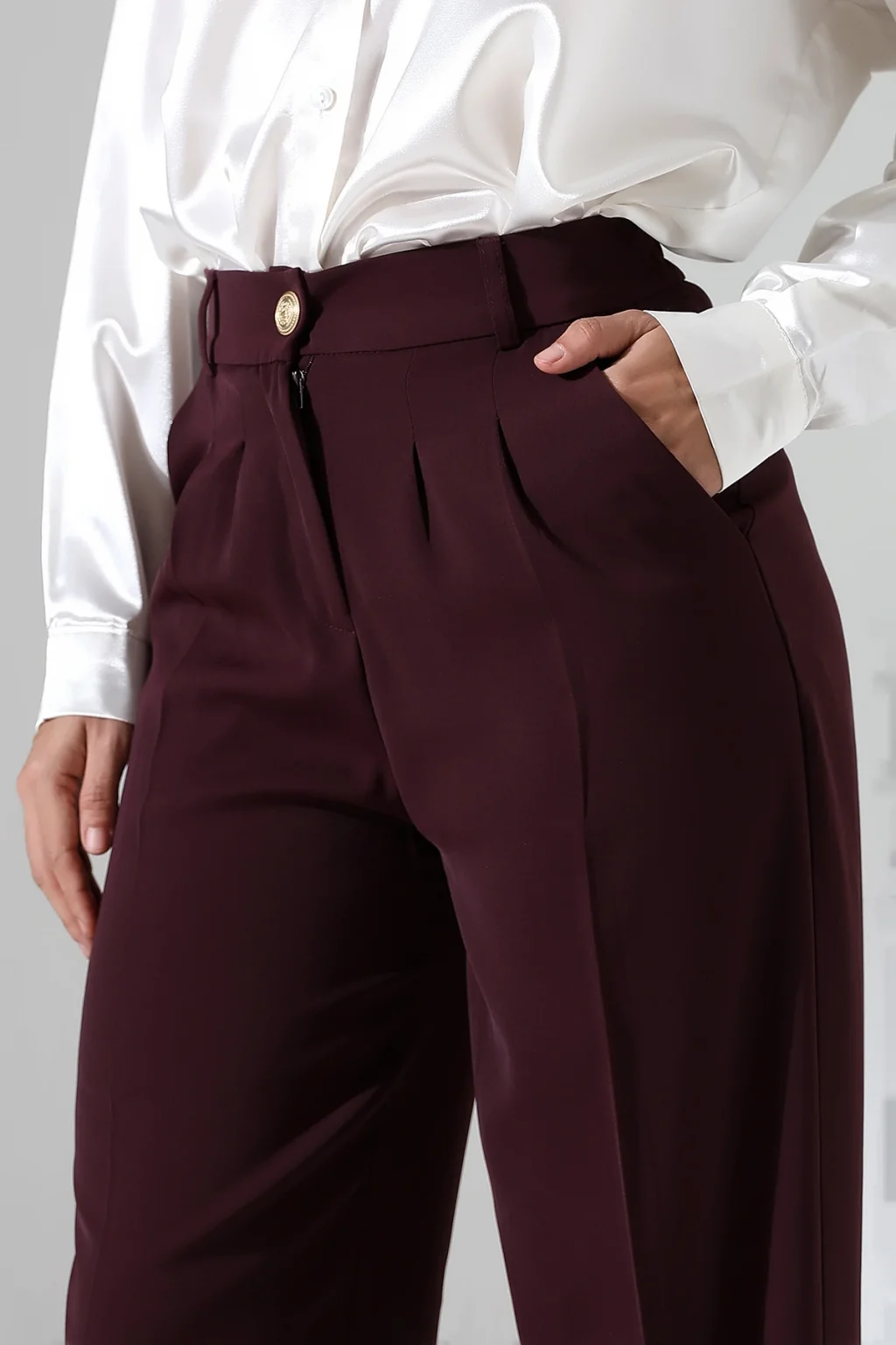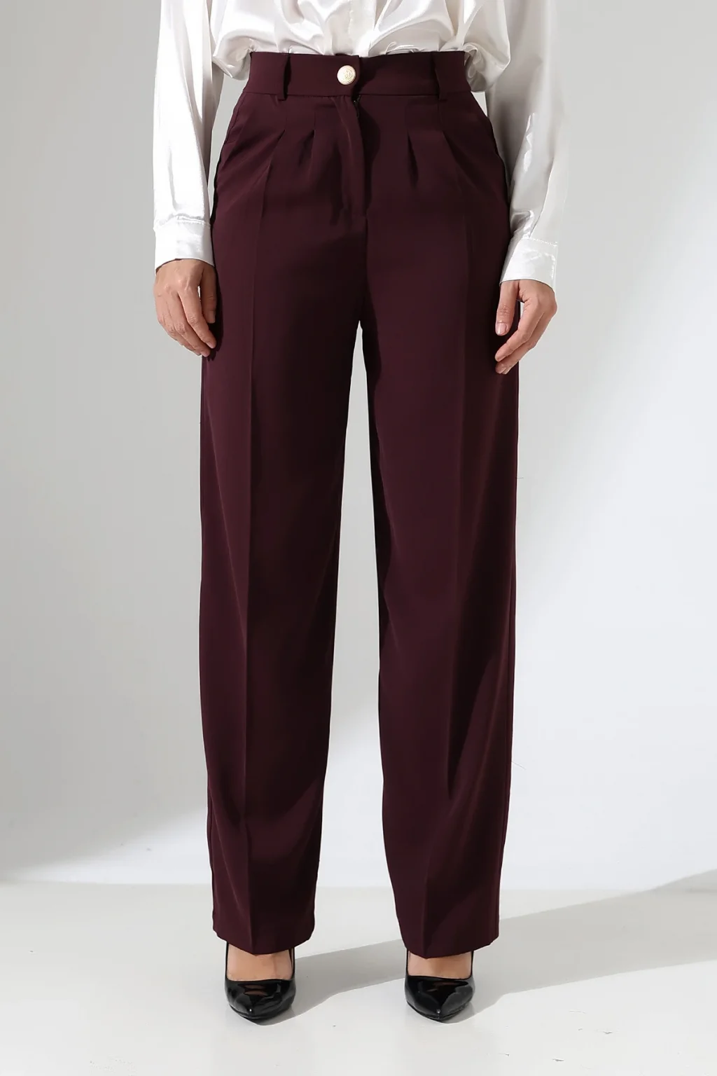 Kadın Arkası Lastikli Yüksek Bel Mürdüm Palazzo Pantolon