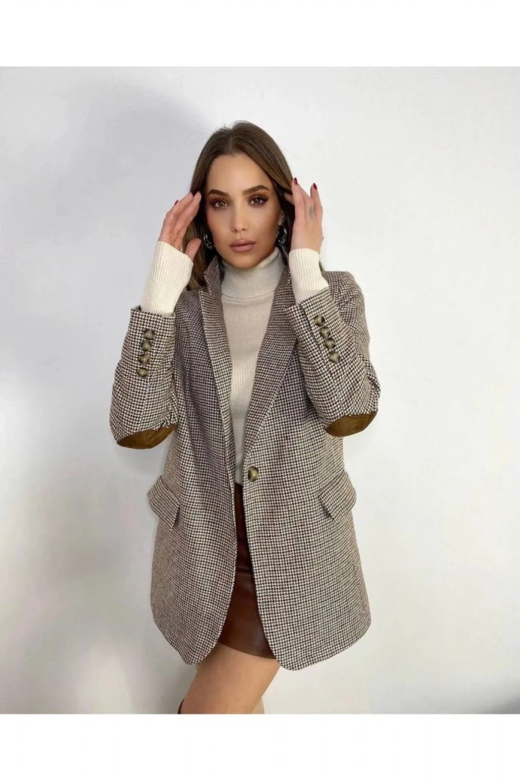 Kahverengi Astarlı Dirsek Detaylı Tek Düğme Kruvaze Blazer Ceket, modern çizgisi ve zarif tasarımı ile günlük kullanım ve özel günler için ideal bir tercihtir. Şık görünümü ve rahat kalıbı sayesinde stilinizi tamamlamanızı sağlar. Kaliteli kumaş yapısı uzun süreli kullanım için uygundur.