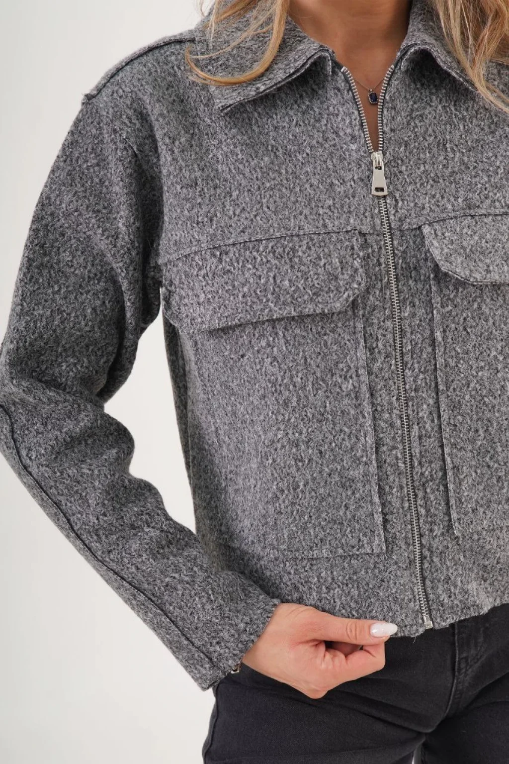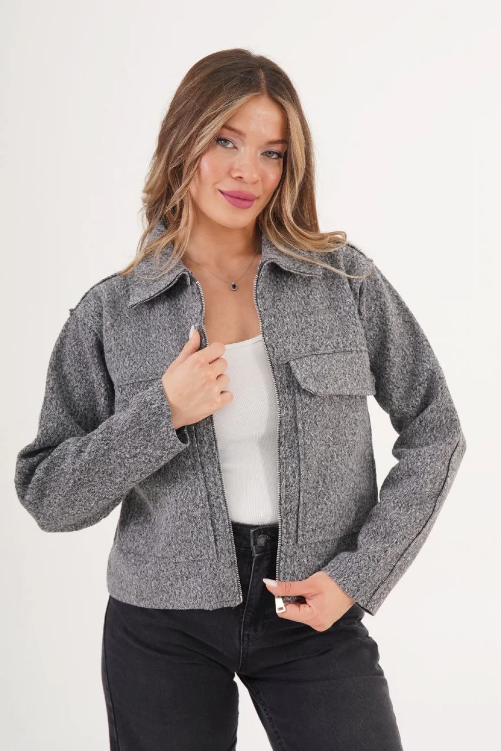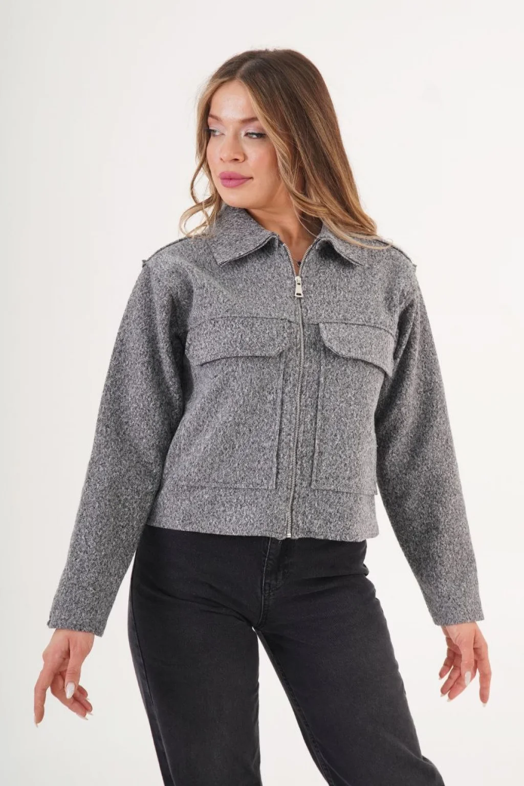 Kadın Buklet Desenli Antrasit Kaşe Ceket