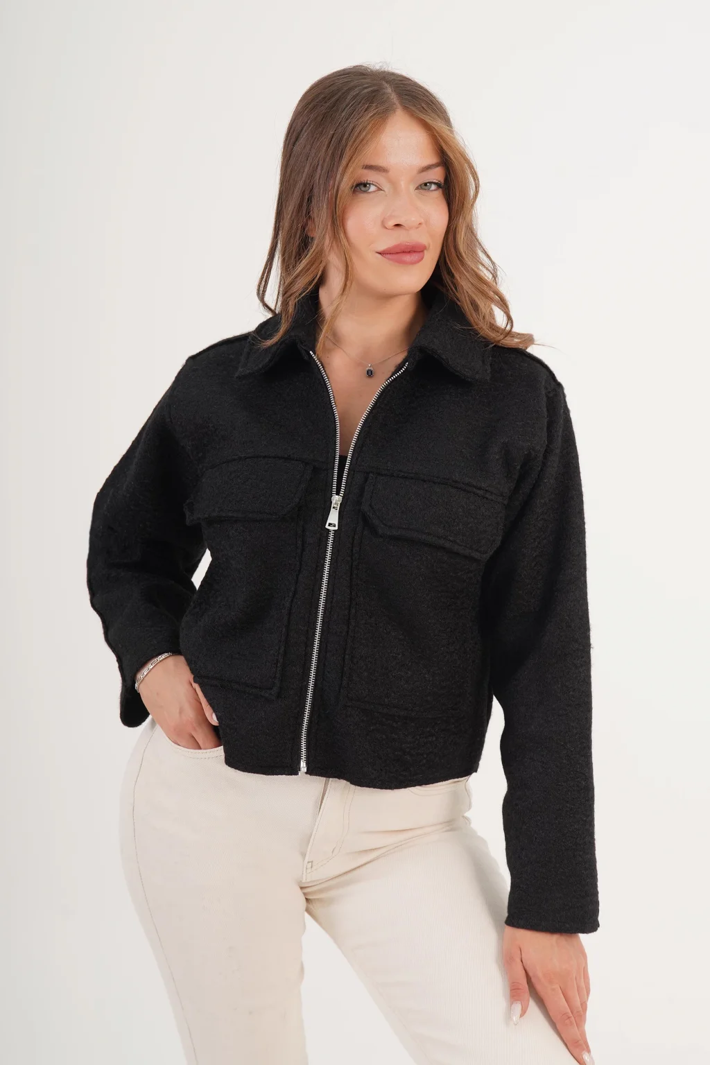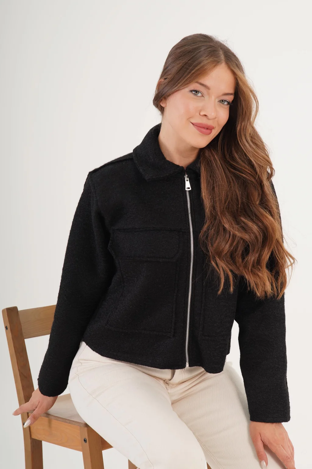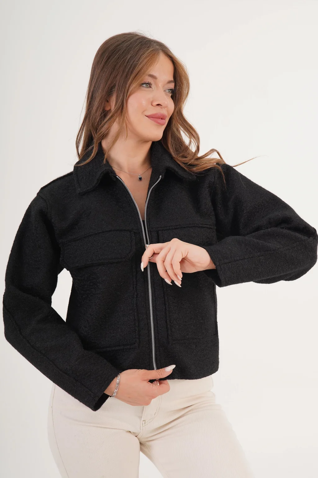 Kadın Buklet Desenli Siyah Kaşe Ceket