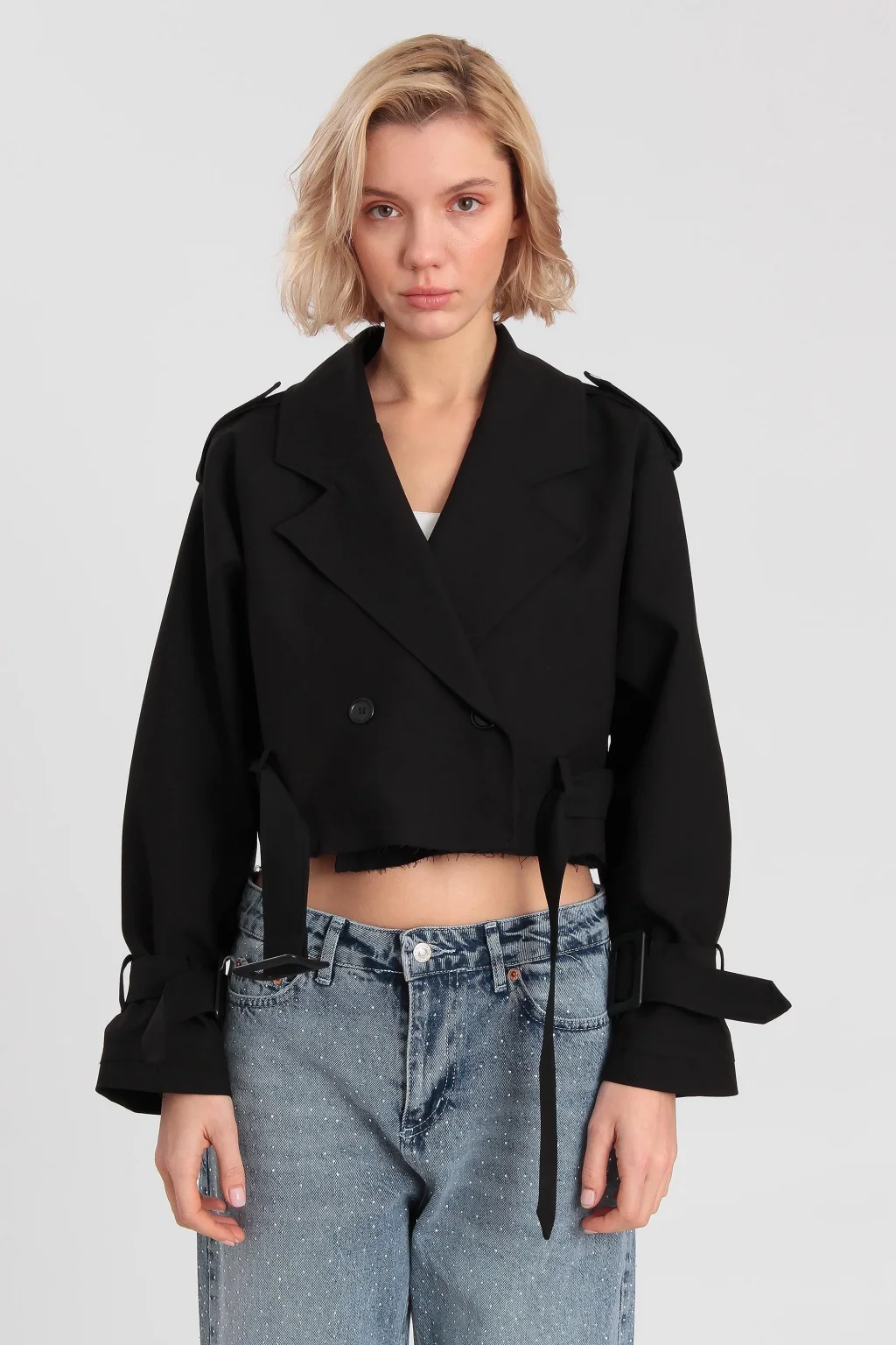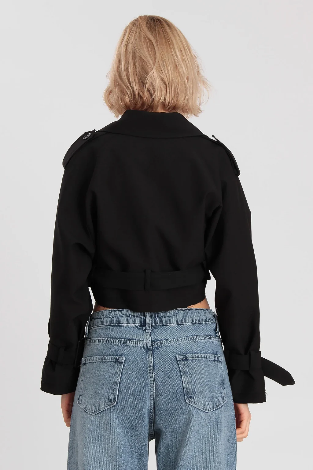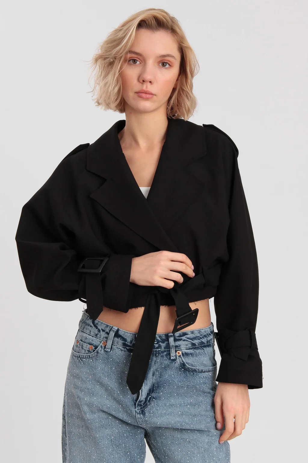 Kadın Kemerli Reglan Kısa Ceket