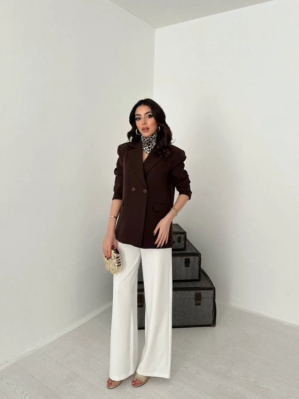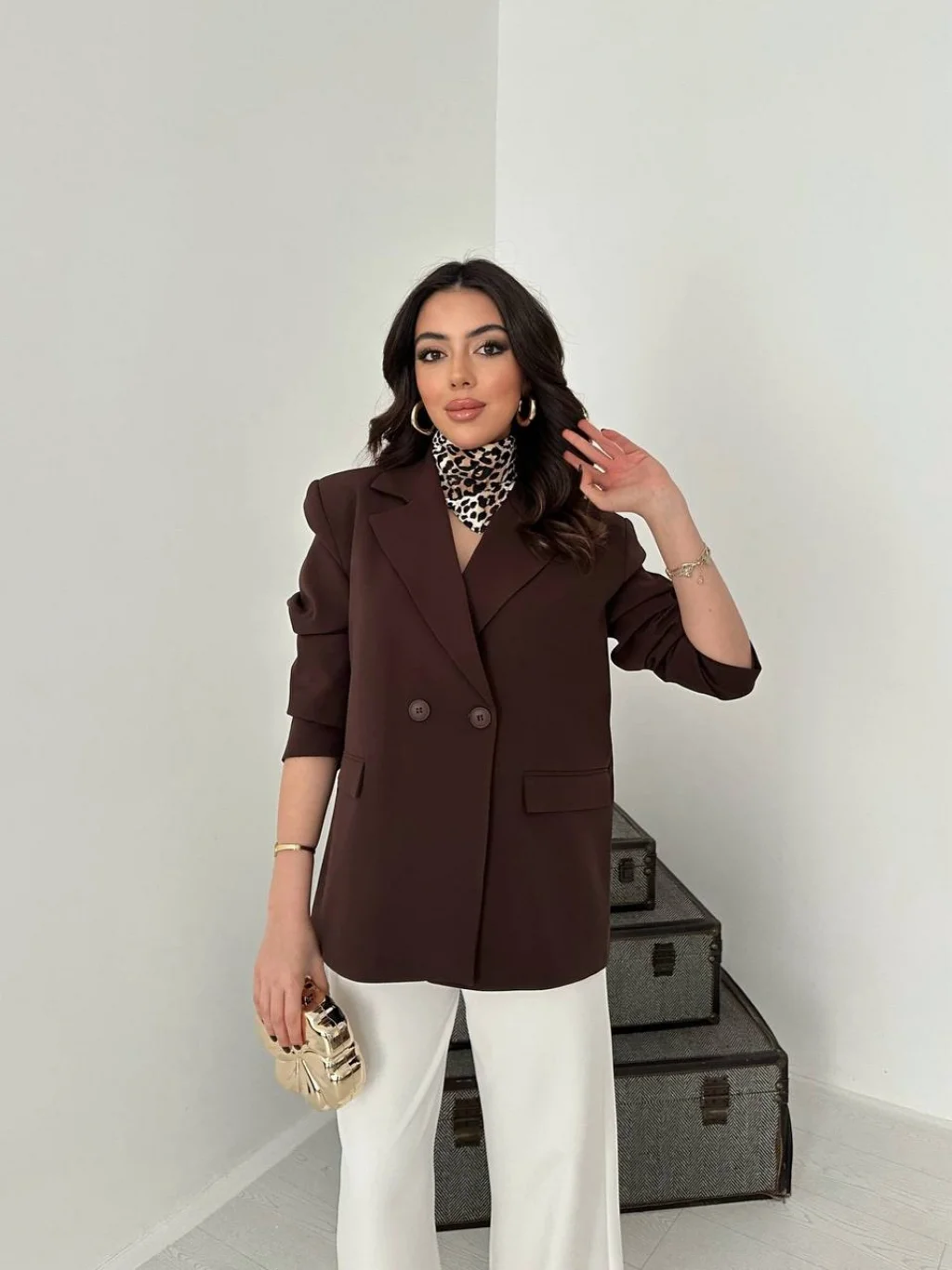 Kadın Kruvaze Oversize Kahverengi Blazer Ceket, modern çizgisi ve zarif tasarımı ile günlük kullanım ve özel günler için ideal bir tercihtir. Şık görünümü ve rahat kalıbı sayesinde stilinizi tamamlamanızı sağlar. Kaliteli kumaş yapısı uzun süreli kullanım için uygundur.