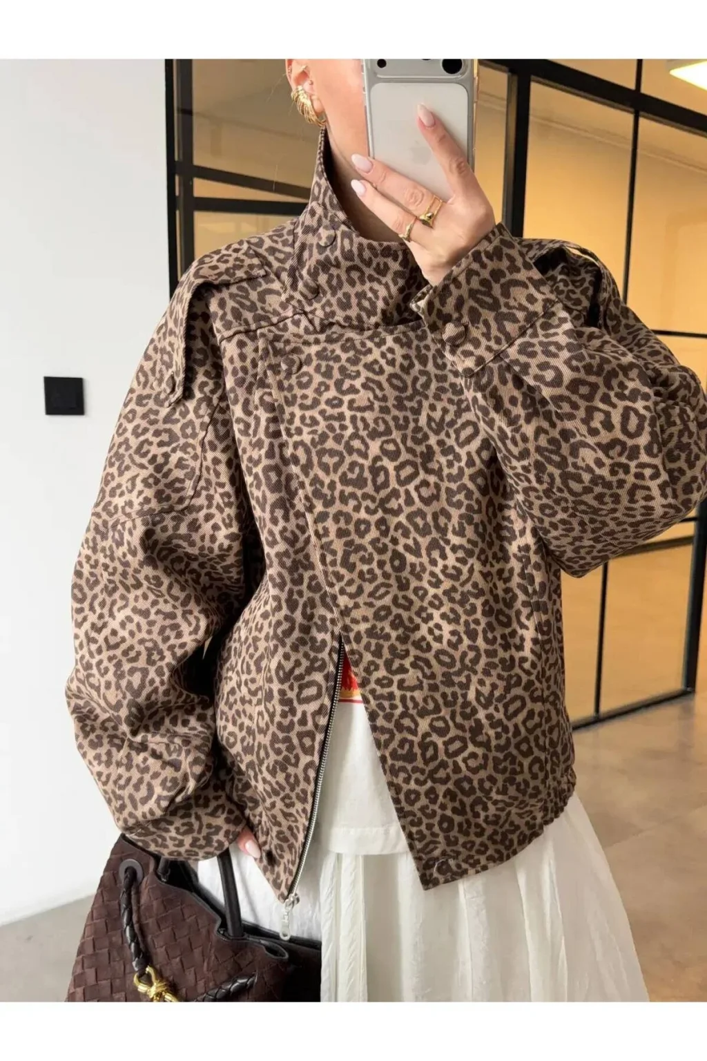 Kadın Leopar Desenli Dik Yaka Astarlı Oversize Bomber Ceket Asimetrik Fermuarlı Ceket, modern çizgisi ve zarif tasarımı ile günlük kullanım ve özel günler için ideal bir tercihtir. Şık görünümü ve rahat kalıbı sayesinde stilinizi tamamlamanızı sağlar. Kaliteli kumaş yapısı uzun süreli kullanım için uygundur.
