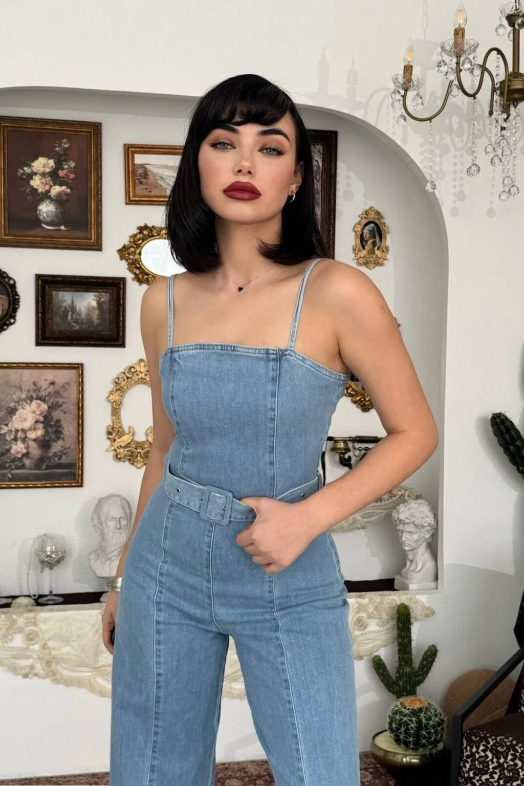 Kadın Mavi Yüksek Bel Geniş Paça Açık Mavi Jean Tulum, modern çizgisi ve zarif tasarımı ile günlük kullanım ve özel günler için ideal bir tercihtir. Şık görünümü ve rahat kalıbı sayesinde stilinizi tamamlamanızı sağlar. Kaliteli kumaş yapısı uzun süreli kullanım için uygundur.