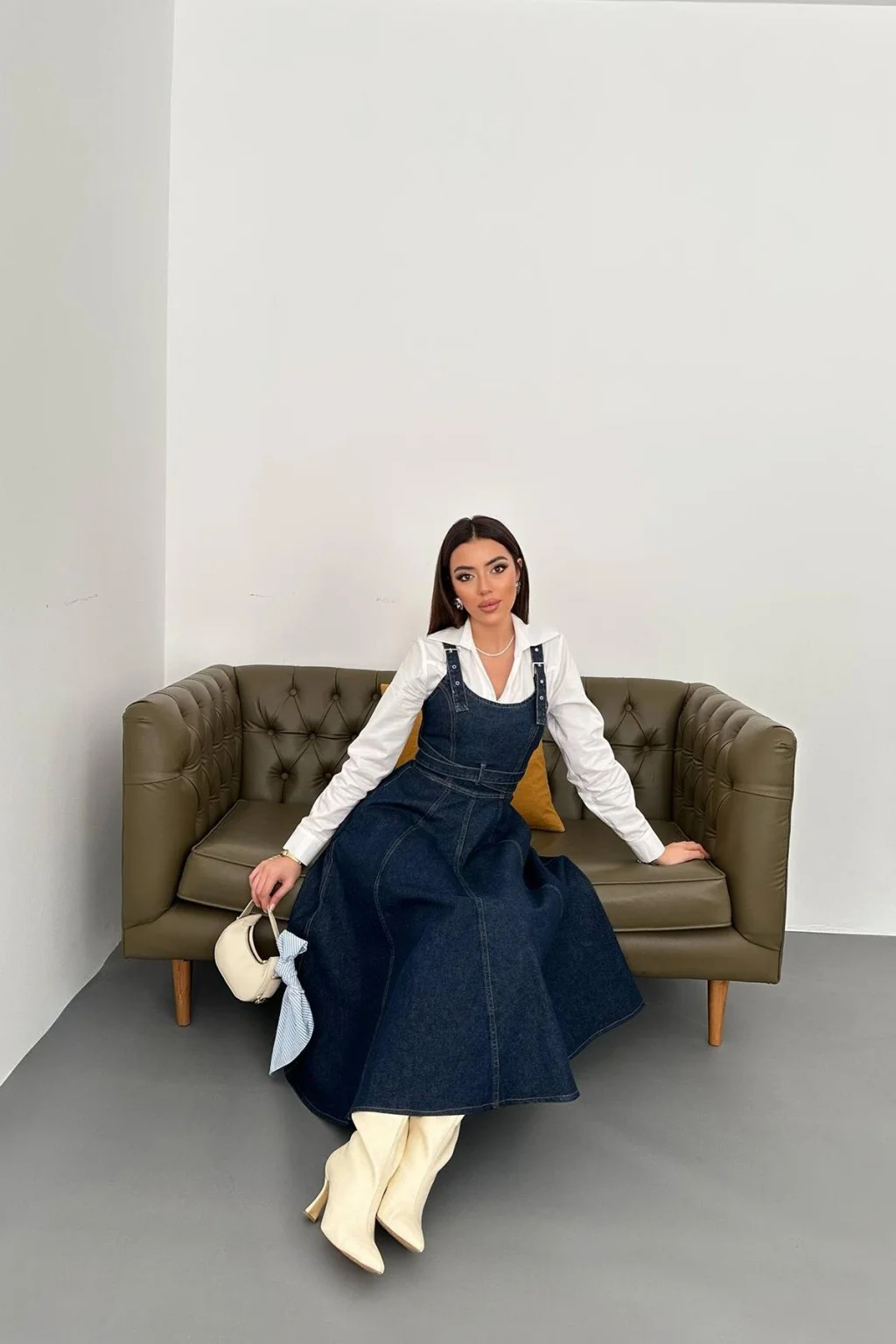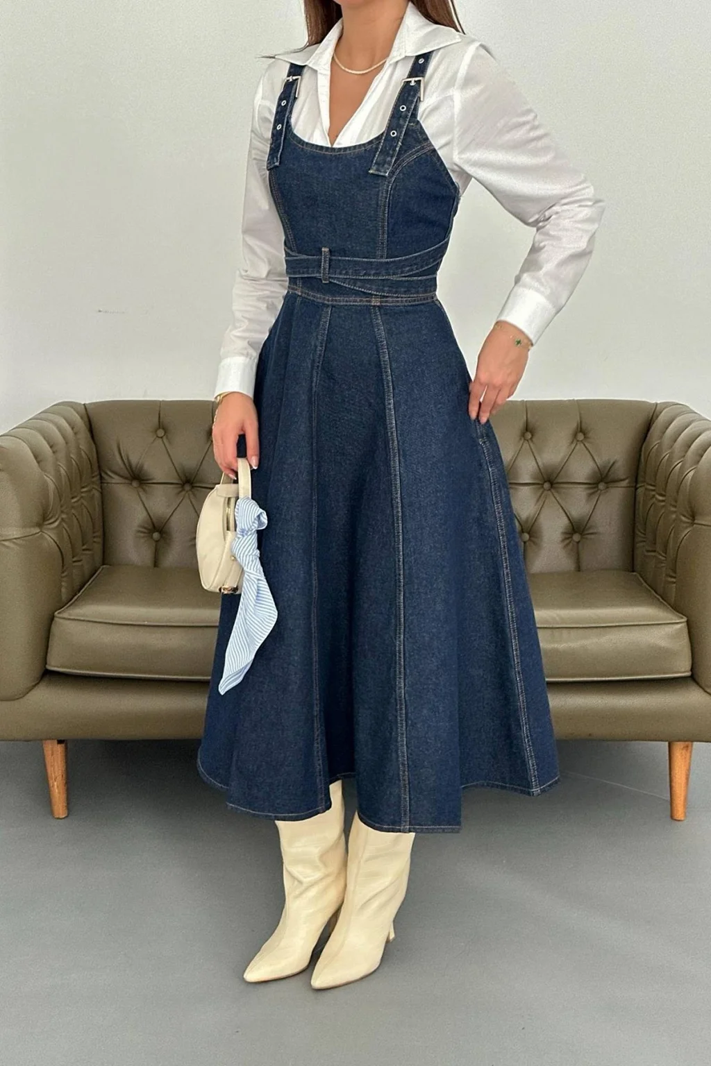 Kadın Midi Boy Bantlı Koyu Mavi Kot Elbise, modern çizgisi ve zarif tasarımı ile günlük kullanım ve özel günler için ideal bir tercihtir. Şık görünümü ve rahat kalıbı sayesinde stilinizi tamamlamanızı sağlar. Kaliteli kumaş yapısı uzun süreli kullanım için uygundur.