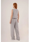 Kadın Ön Bağlama Detaylı Yelek Ve Pantolon Gri 2'li Takım