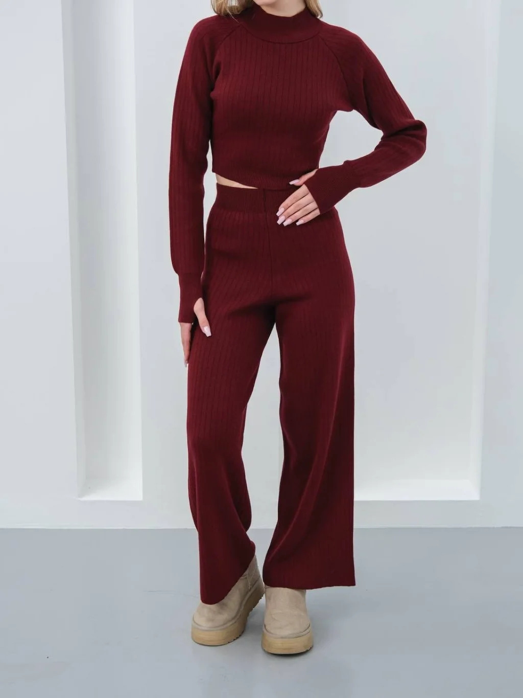 Kadın Parmak Geçmeli Crop-Pantolon 2'li Takım, modern çizgisi ve zarif tasarımı ile günlük kullanım ve özel günler için ideal bir tercihtir. Şık görünümü ve rahat kalıbı sayesinde stilinizi tamamlamanızı sağlar. Kaliteli kumaş yapısı uzun süreli kullanım için uygundur.