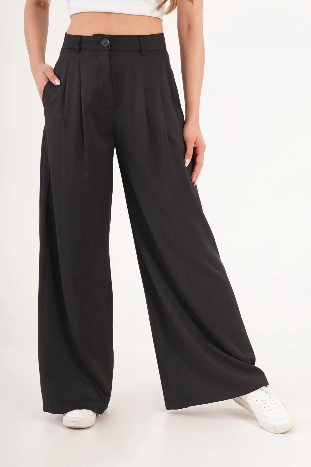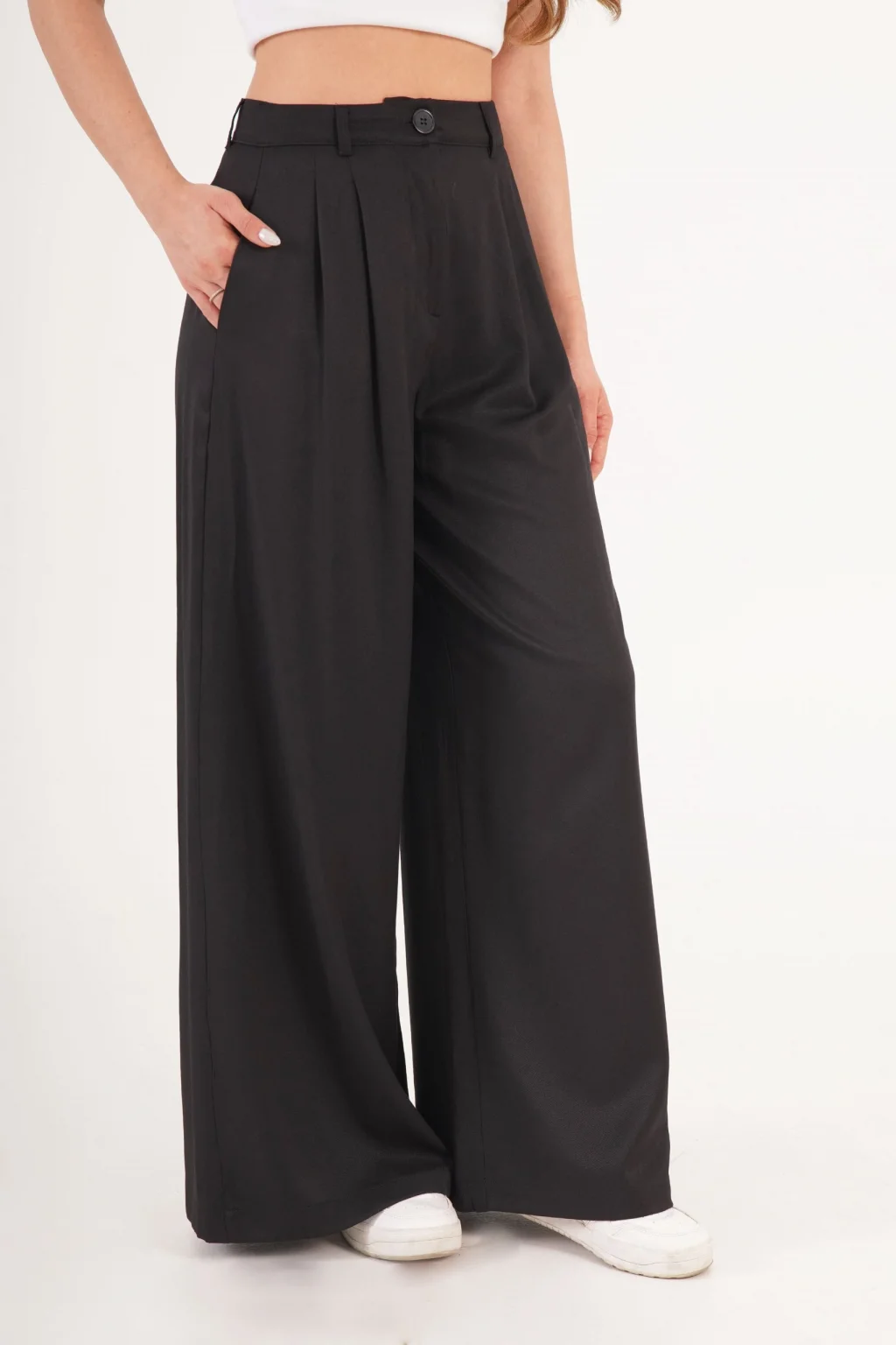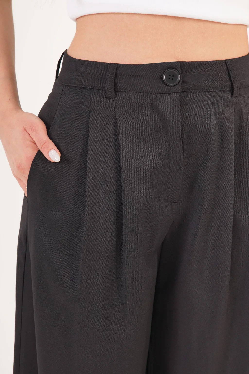 Kadın Piliseli Salaş Siyah Pantolon