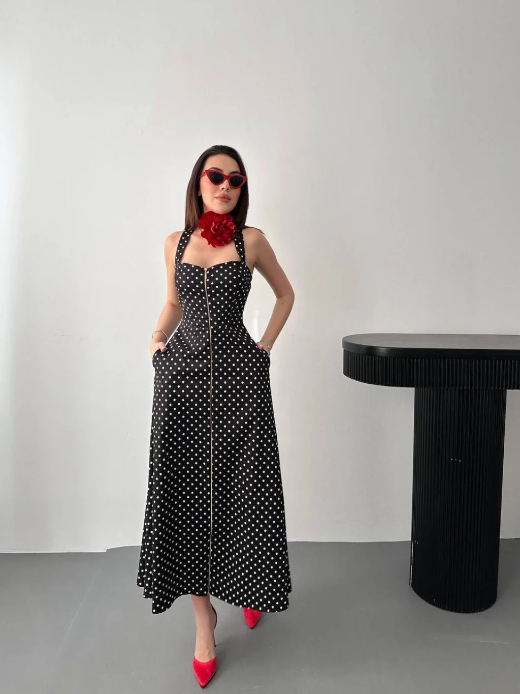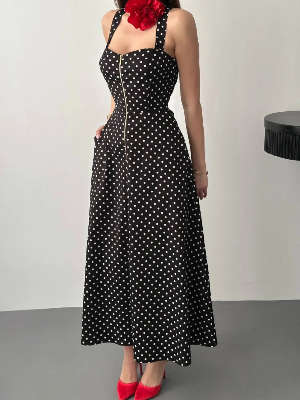 Kadın Puantiyeli Fermuar Detaylı Siyah Elbise, modern çizgisi ve zarif tasarımı ile günlük kullanım ve özel günler için ideal bir tercihtir. Şık görünümü ve rahat kalıbı sayesinde stilinizi tamamlamanızı sağlar. Kaliteli kumaş yapısı uzun süreli kullanım için uygundur.