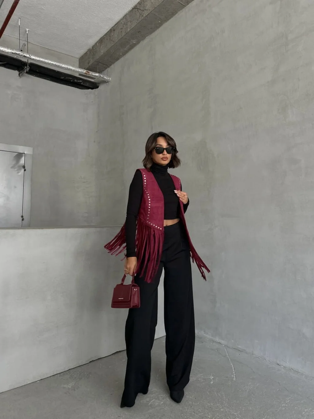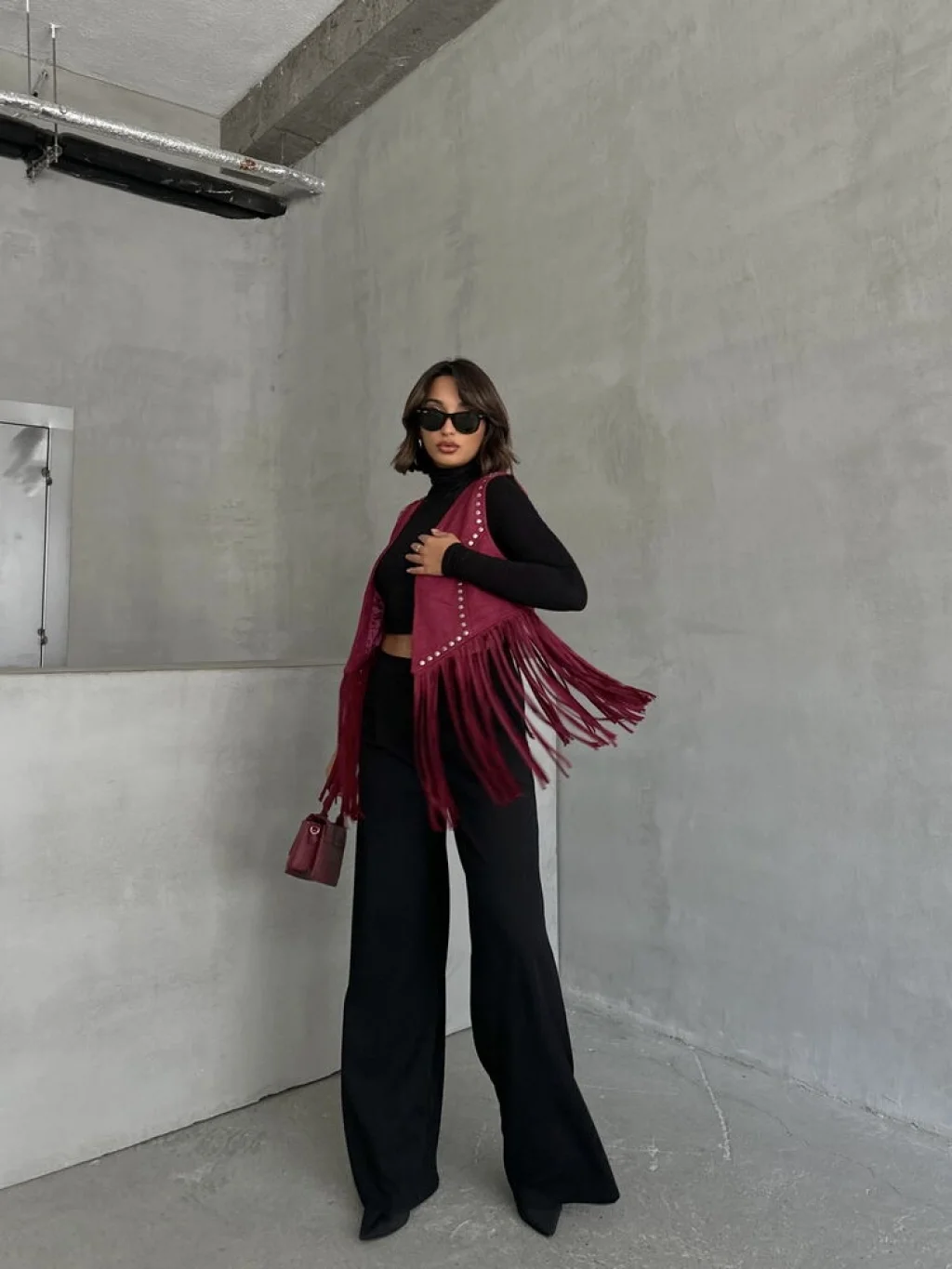 Kadın Püsküllü Bordo Süet Yelek, modern çizgisi ve zarif tasarımı ile günlük kullanım ve özel günler için ideal bir tercihtir. Şık görünümü ve rahat kalıbı sayesinde stilinizi tamamlamanızı sağlar. Kaliteli kumaş yapısı uzun süreli kullanım için uygundur.