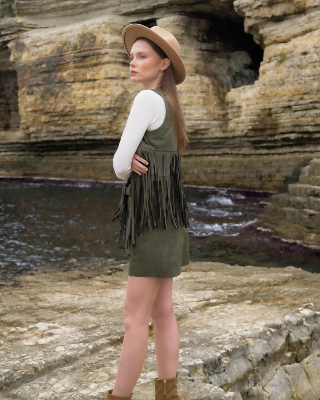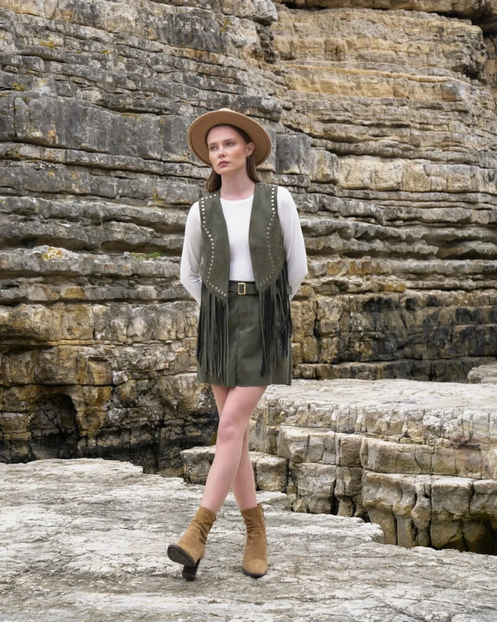 Kadın Püsküllü Haki Süet Yelek, modern çizgisi ve zarif tasarımı ile günlük kullanım ve özel günler için ideal bir tercihtir. Şık görünümü ve rahat kalıbı sayesinde stilinizi tamamlamanızı sağlar. Kaliteli kumaş yapısı uzun süreli kullanım için uygundur.