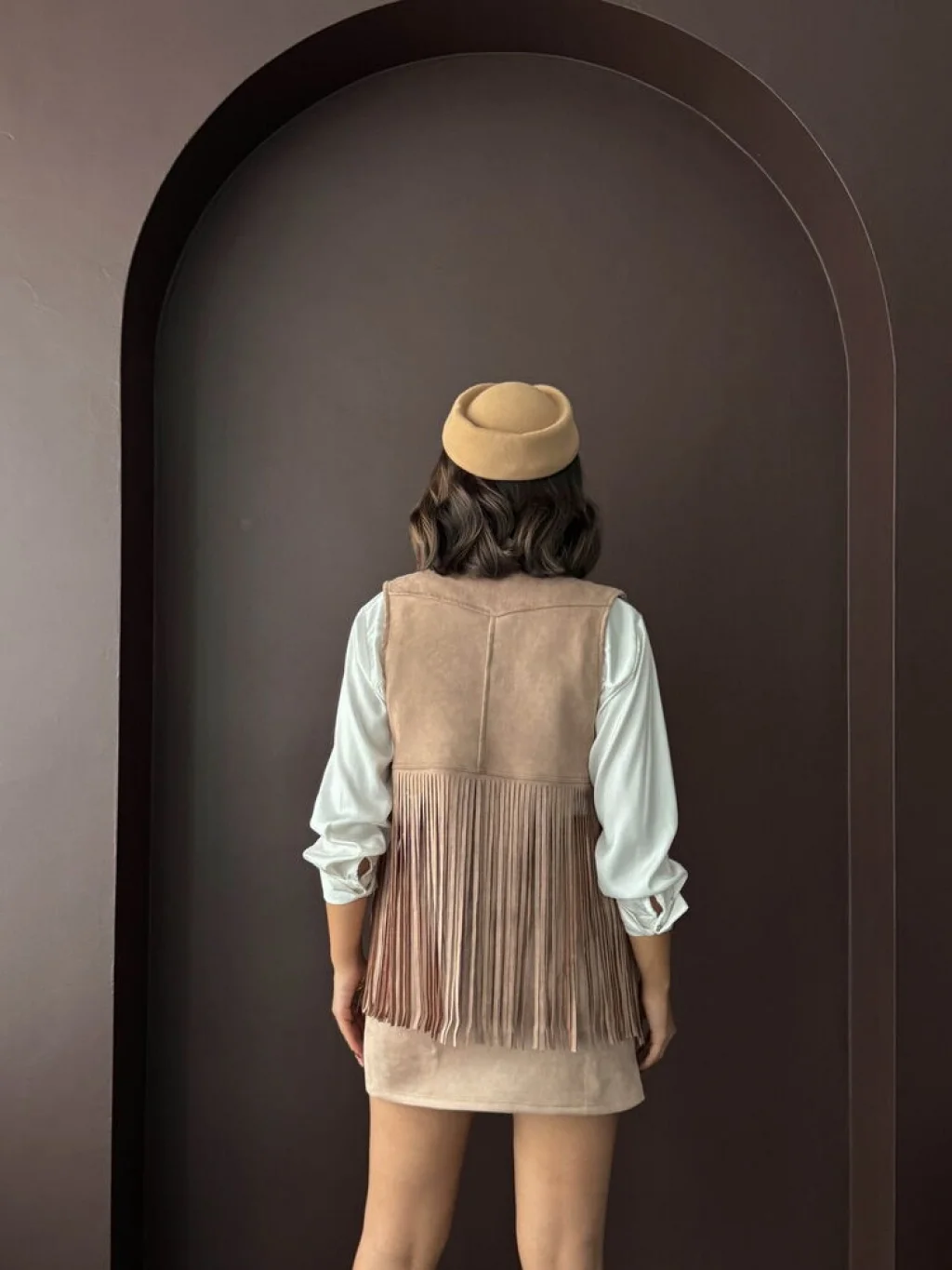 Kadın Püsküllü Vizon Süet Yelek