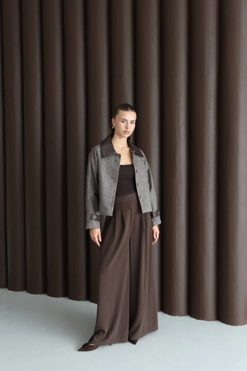 Kadın Suni Deri Garnili Balık Sırtı Ceket, modern çizgisi ve zarif tasarımı ile günlük kullanım ve özel günler için ideal bir tercihtir. Şık görünümü ve rahat kalıbı sayesinde stilinizi tamamlamanızı sağlar. Kaliteli kumaş yapısı uzun süreli kullanım için uygundur.