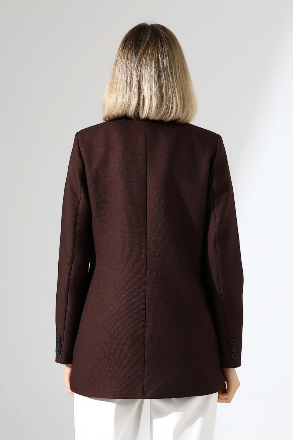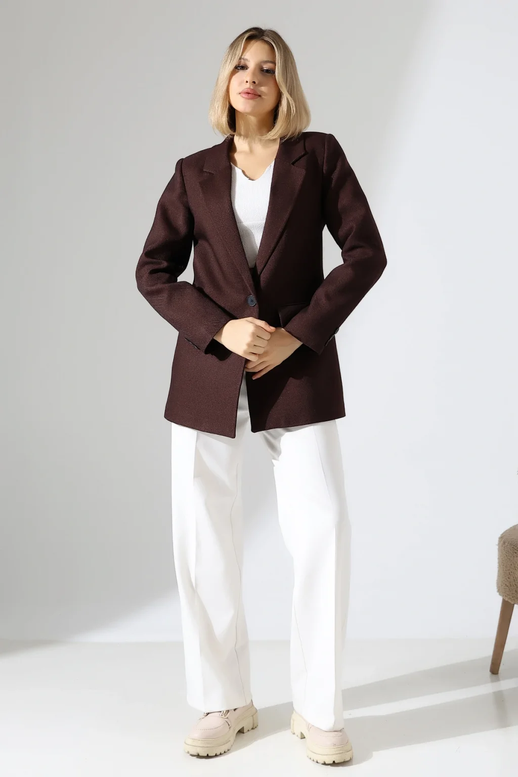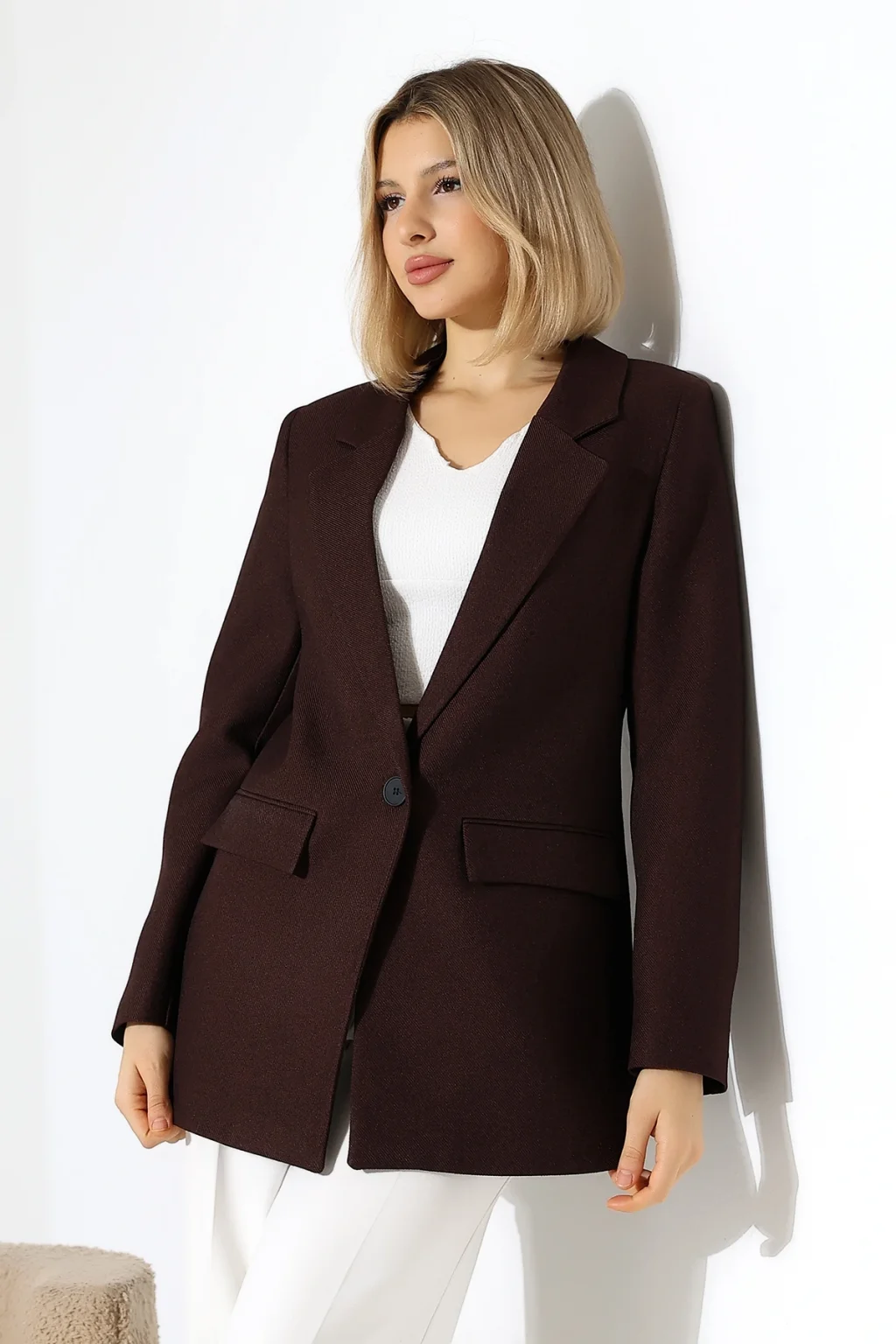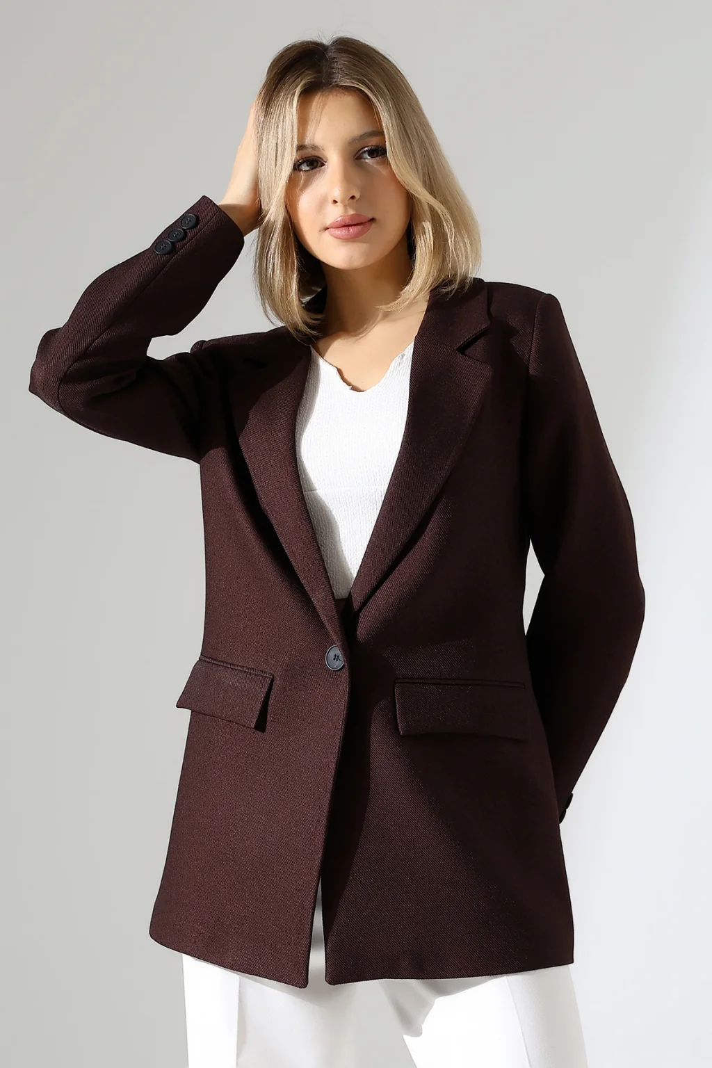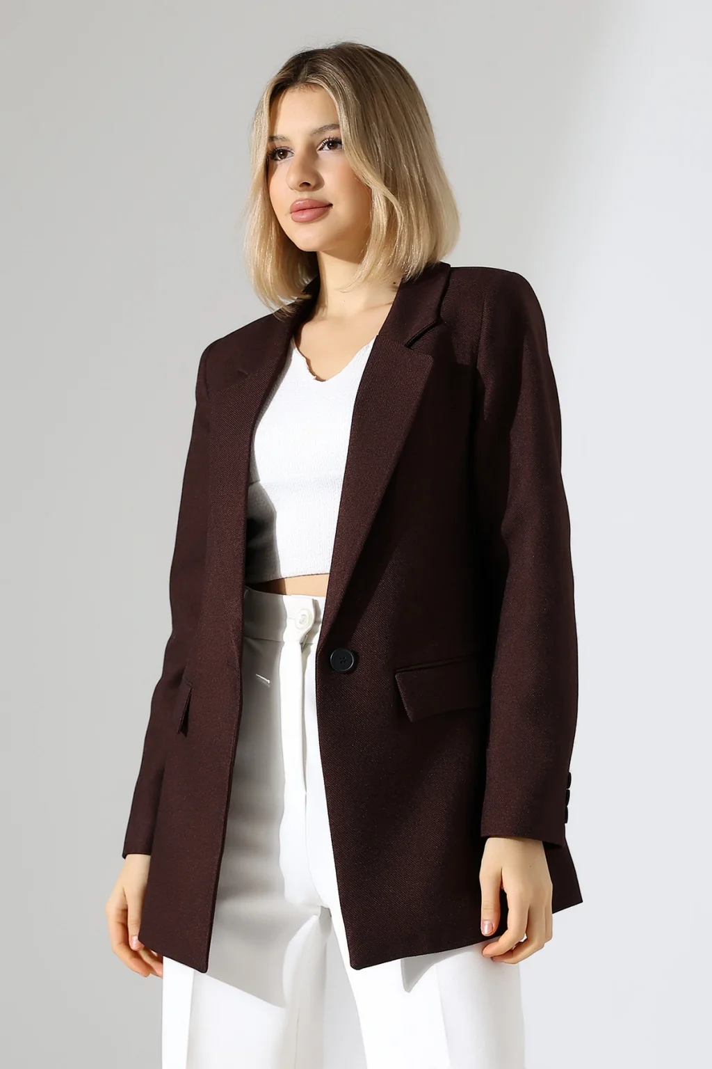 Kadın Tek Düğme Acı Kahve Blazer Ceket