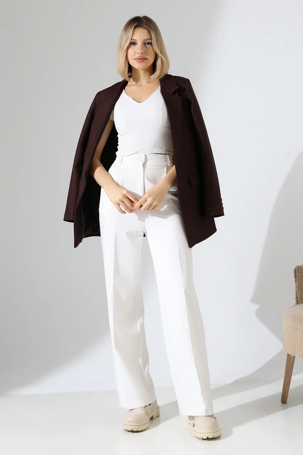 Kadın Tek Düğme Acı Kahve Blazer Ceket, modern çizgisi ve zarif tasarımı ile günlük kullanım ve özel günler için ideal bir tercihtir. Şık görünümü ve rahat kalıbı sayesinde stilinizi tamamlamanızı sağlar. Kaliteli kumaş yapısı uzun süreli kullanım için uygundur.