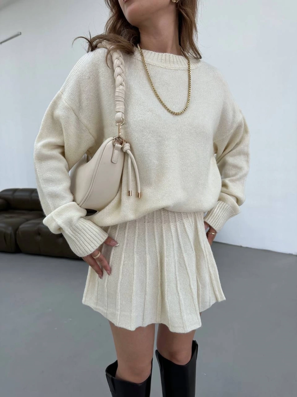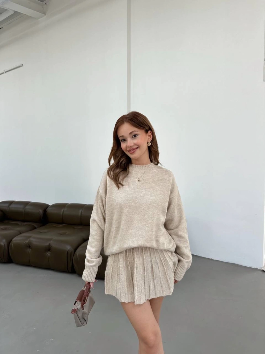 Kadın Triko Kazak-Etek İkili Takım, modern çizgisi ve zarif tasarımı ile günlük kullanım ve özel günler için ideal bir tercihtir. Şık görünümü ve rahat kalıbı sayesinde stilinizi tamamlamanızı sağlar. Kaliteli kumaş yapısı uzun süreli kullanım için uygundur.