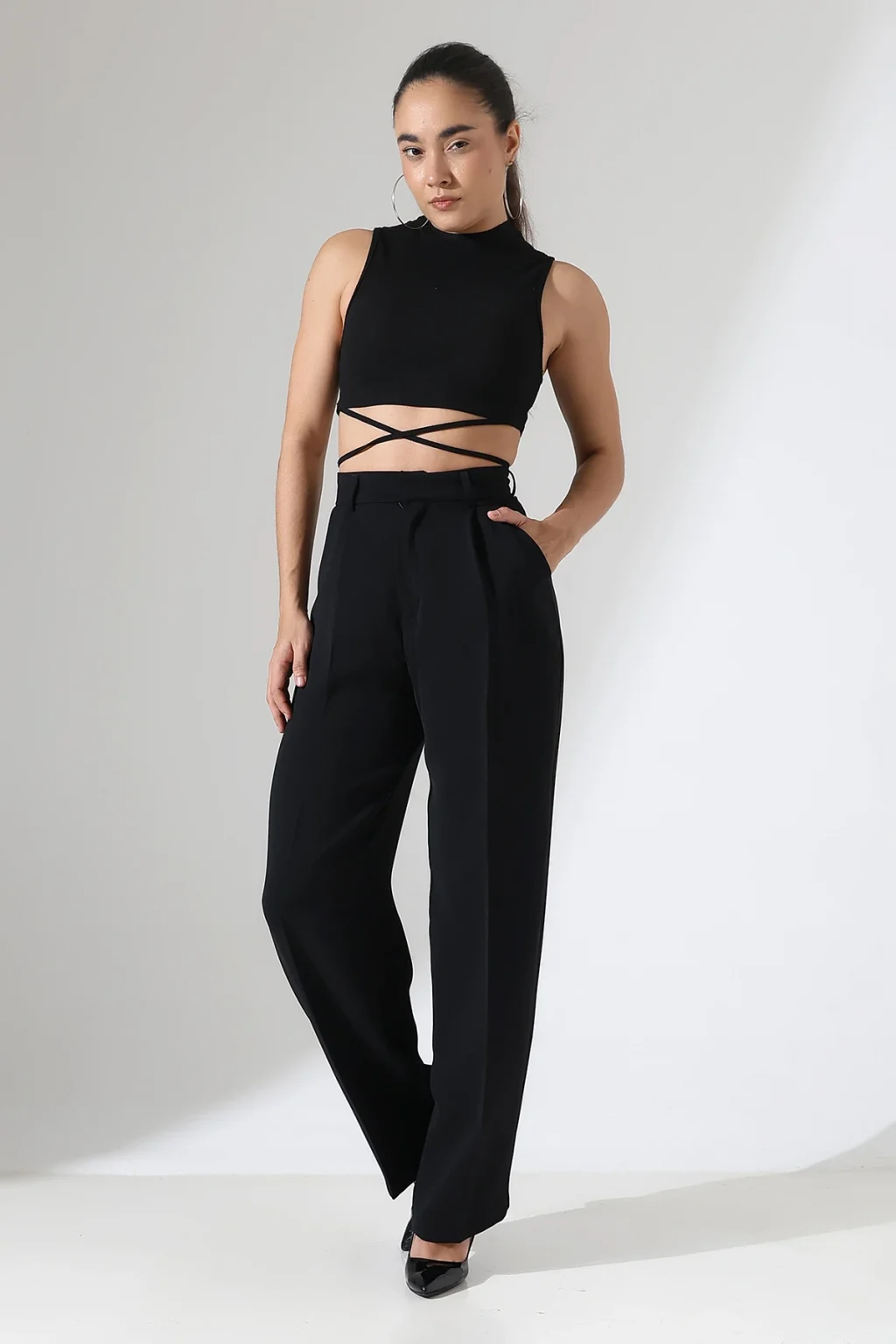 Kadın Yüksek Bel Pileli Siyah Palazzo Pantolon, modern çizgisi ve zarif tasarımı ile günlük kullanım ve özel günler için ideal bir tercihtir. Şık görünümü ve rahat kalıbı sayesinde stilinizi tamamlamanızı sağlar. Kaliteli kumaş yapısı uzun süreli kullanım için uygundur.
