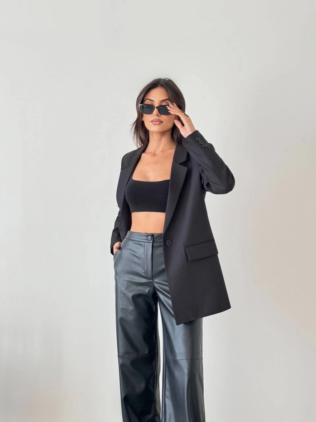 Kadın Tek Düğme Blazer Ceket, modern çizgisi ve zarif tasarımı ile günlük kullanım ve özel günler için ideal bir tercihtir. Şık görünümü ve rahat kalıbı sayesinde stilinizi tamamlamanızı sağlar. Kaliteli kumaş yapısı uzun süreli kullanım için uygundur.