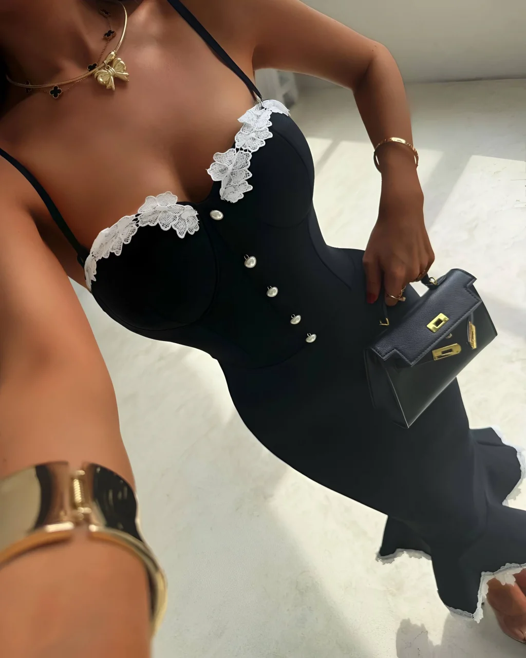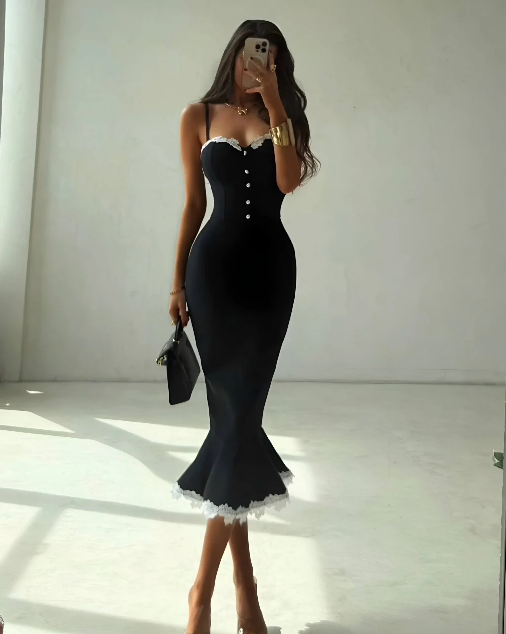 Siyah Dantel Detaylı Korse Görünümlü Balık Model Midi Boy Abiye Elbise, modern çizgisi ve zarif tasarımı ile günlük kullanım ve özel günler için ideal bir tercihtir. Şık görünümü ve rahat kalıbı sayesinde stilinizi tamamlamanızı sağlar. Kaliteli kumaş yapısı uzun süreli kullanım için uygundur.